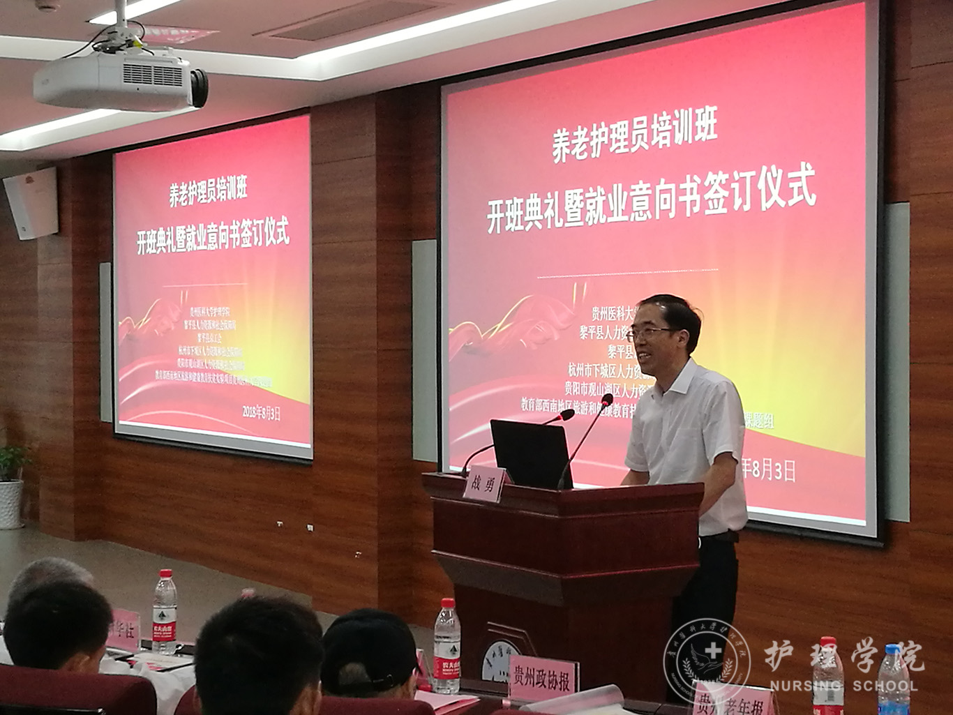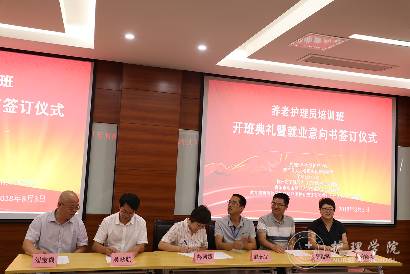 8月3日下午,公司在北校区临床技能中心207会议室举行2018年养老护理员培训班开班典礼暨就业意向书签订仪式,此培训班由bevictor伟德官网与黎平县人力资源和社会保障局、黎平县总工会、浙江省杭州市下城区人力资源和社会保障局、贵阳市观山湖区人力资源和社会保障局联合举办。公司党委副书记战勇、中国红十字总会发展中心、北京曜阳养老服务中心、北京儆堂集养老中心、贵阳曜阳养老服务中心等需用人单位负责人出席,bevictor伟德官网领导及相关部门负责人参加,开班典礼由bevictor伟德官网教学科研管理科科长王秀红主持。