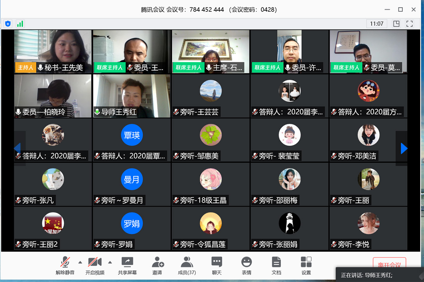 历时两天的线上预答辩在各位专家辛勤付出和研究生们认真努力中顺利完成。整个答辩过程公开透明,严谨公正,流程规范。同学们通过专家的帮助及时发现问题,进一步修正和完善论文,为学位论文质量提升、顺利完成毕业答辩奠定了基础。