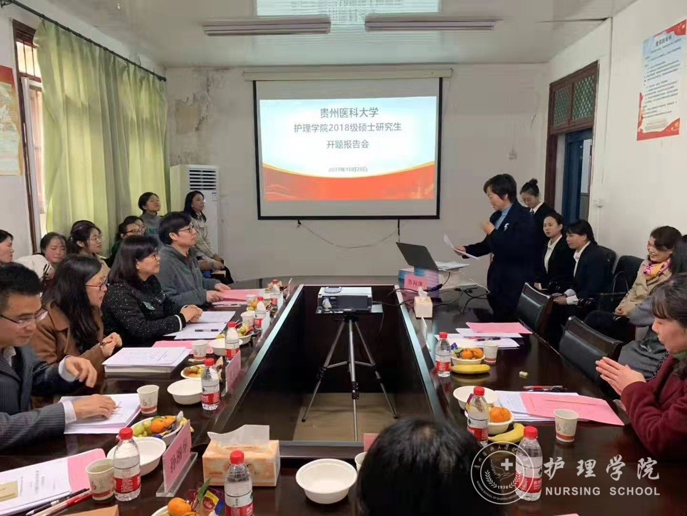 此次开题由伟德官网bv1946附属医院神经外科主任、博士生导师杨华教授任专家组组长,贵州中医药大学bevictor伟德官网石国凤教授、伟德官网bv1946公共卫生公司汪俊华副教授、伟德官网bv1946临床公司老年医学教研室莫显刚博士、附属医院疼痛科孙丽华副主任护师任专家组成员。老年保健与护理、护理临床疾病与基础研究方向王晶、裴莹莹和张丽娟3名同学参加此次开题。同学们分别就自己的课题进行了20分钟汇报,并接受了专家的询问指导。