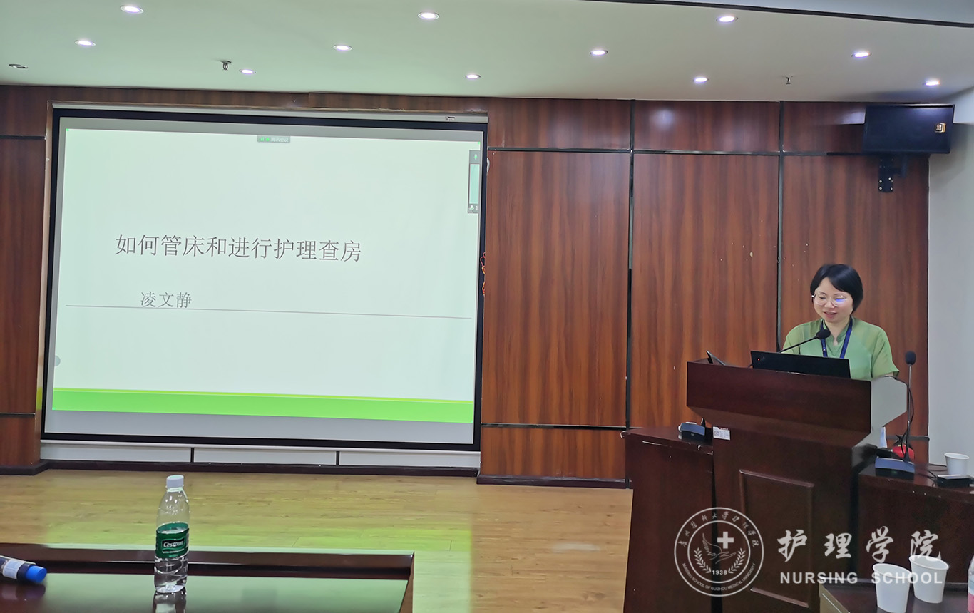 指导会上,凌文静结合自己在复旦大学公司研究生学习期间的经历,以“如何管床和进行护理查房”为题,从查房的准备、实施、考核、注意事项等方面做了精彩的分享,同时针对同学们在临床实践过程中的常见心理问题给予了积极的引导。