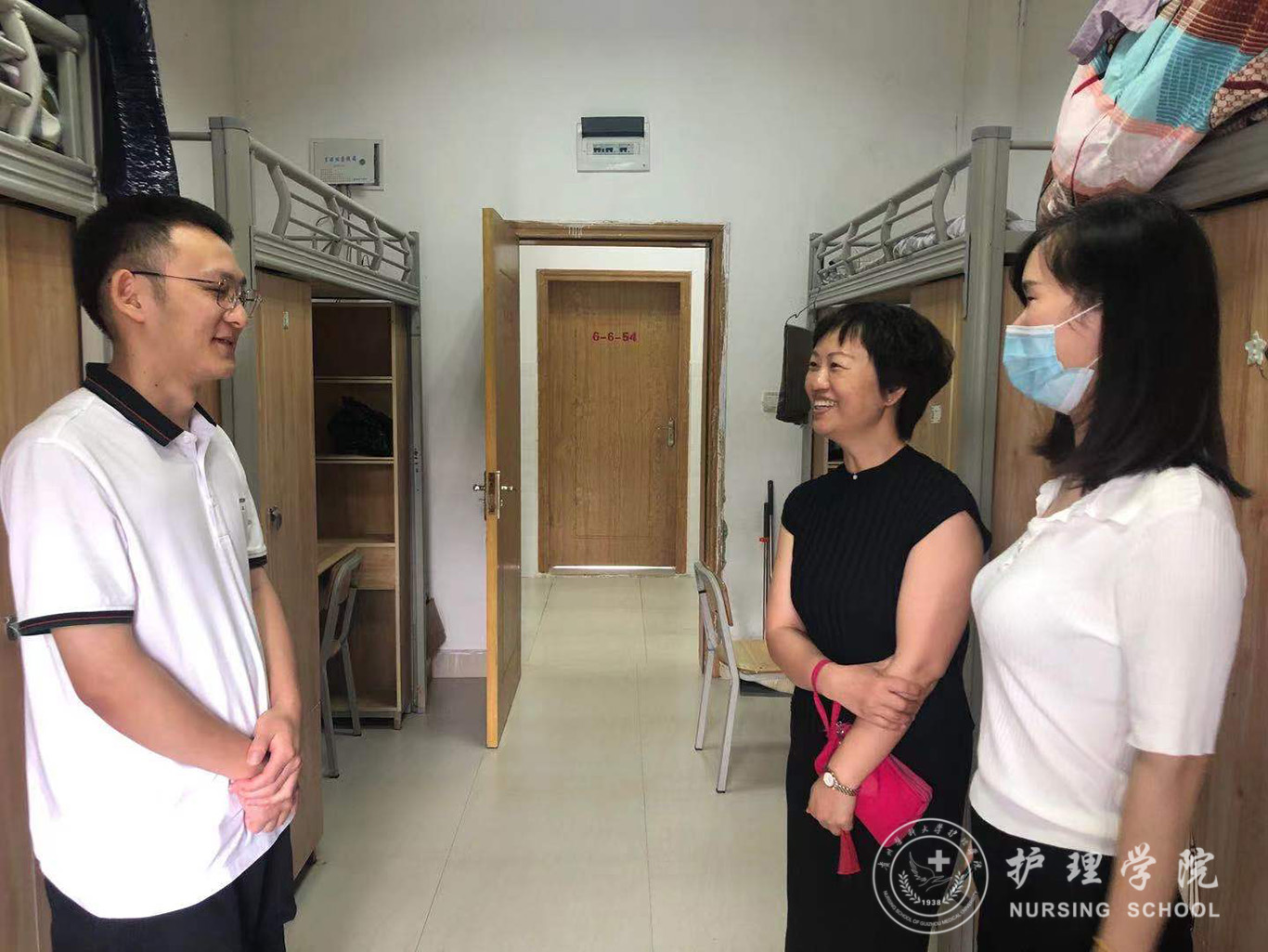 新学期初始,为了解2021级硕士研究生在校期间生活、学习情况,9月 9日,bevictor伟德官网党委书记杨英,党委委员、副经理王秀红带领研究生辅导员田晶、戴黎黎走访研究生宿舍看望2021级硕士研究生新生。