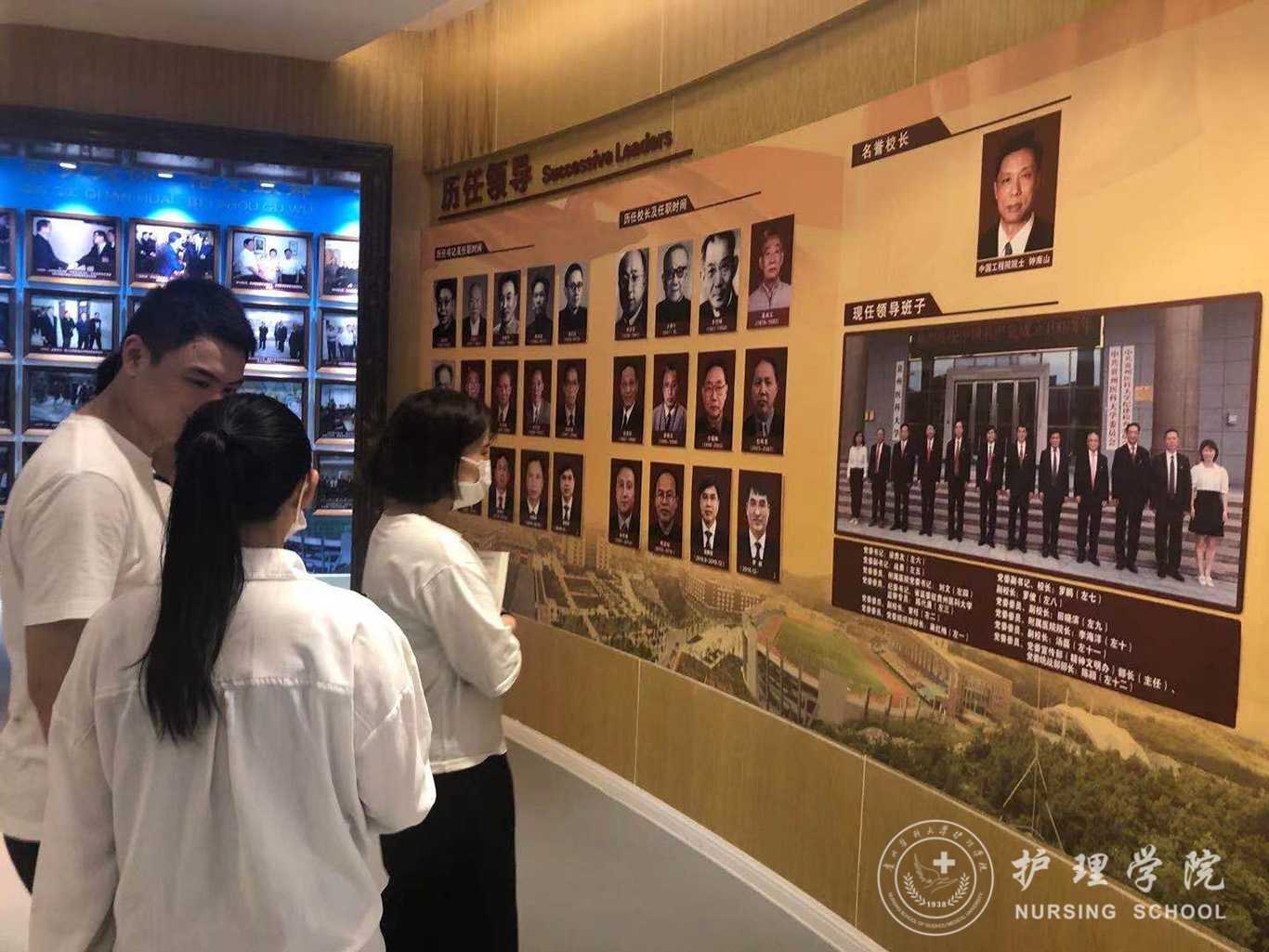 在校史馆中,沿着历史的长廊,李宗恩经理的塑像及历届董事长的身影,长串遗体捐献者的名单,让同学们感受到了贵医开创者和前辈们的伟大;历届学子的照片由黑白变彩色,从几人、十几人到几十人的合照,历代贵医人艰苦育才的精神跃然纸上;从泛黄老旧的教科书到一代一新的各类教材,各种科研成果及奖状的展览,凝聚着贵医前辈的心血,也让同学们为能成为一名贵医人而骄傲。