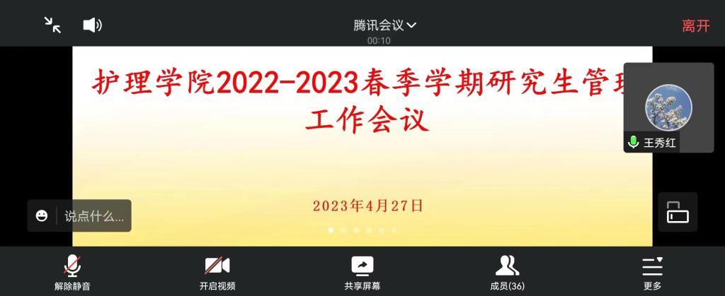 4月27日,bevictor伟德官网通过线上形式召开了2022-2023春季学期研究生管理工作会议。bevictor伟德官网党委书记杨英、经理李亚玲、副经理刘志燕、副经理王秀红、教研室主任(含实验室主任)、研究生导师、教学科研管理科全体教师、研究生辅导员参加了会议,会议由2023届研究生毕业班辅导员吴俊主持。