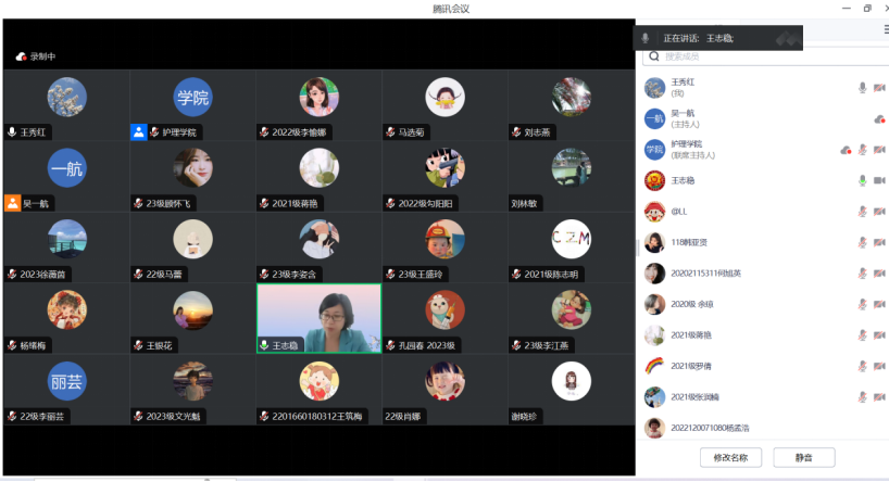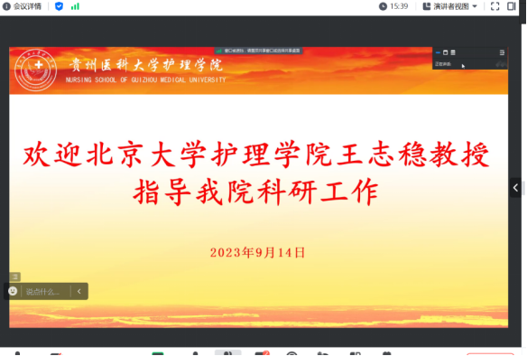王志稳教授从研究生学位论文评审相关要求引入,结合自身丰富的科研经验,以研究实例为主线,从描述问题的现状及影响因素、探究机制及影响路径、研发风险预测模型、探究改善问题的方法:干预性研究、证据综合转化与应用研究等5个方面对护理学研究生论文选题进行了讲解。直观典型的案例及透彻明晰的分析让听者沉醉其中。讲授过程中王志稳教授对公司产品过程中导师如何“导”,员工如何“学”也做了毫无保留的分享。专题讲座结束后,王志稳教授针对老师和同学们提出的问题逐一进行了解答和指导。