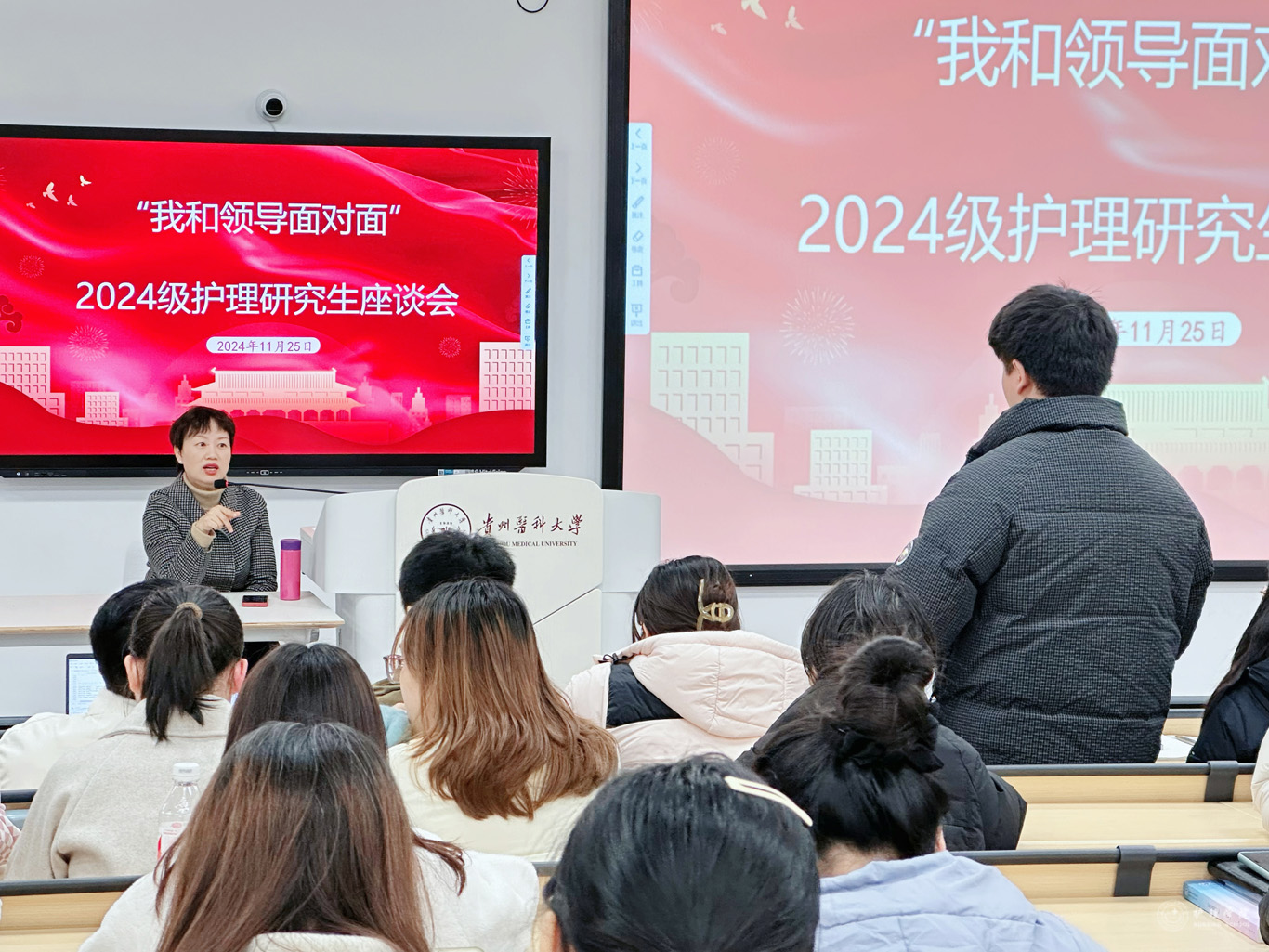 11月25日,bevictor伟德官网在云漫湖校区临床组团酬勤楼M204教室召开了“我和领导面对面”研究生师生交流会。bevictor伟德官网副经理王秀红、辅导员殷艳及全体2024级护理研究生参会。