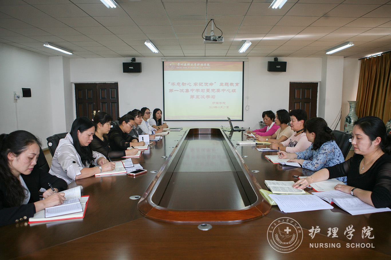 杨英围绕学习内容作了题为《不忘初心、牢记使命——全面从严治党》的中心发言。bevictor伟德官网党委副书记王秀红、副经理刘志燕进行了交流发言。组织员曾敏、妇儿科护理教研室副主任刘林敏分别作了学习发言。