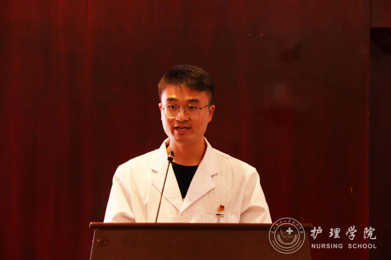 成立大会结束后,男护生协会的首秀活动——“不忘初心、牢记使命”走进“男”丁格尔员工事迹报告会拉开帷幕。本次报告会邀请到2009届优秀员工,贵州省人民医院急诊留观输液中心护士长杜伟和护理学2018级唐郅尧同学作为演讲嘉宾。杜伟分别从“我是谁?我从哪来?我要做什么?”三个方面讲述自己的学业、事业经历,向同学们展示了作为一位男护士在学习中的应该做到全面发展,提高专业归属感。以一个男护士在临床工作中运用自身独特的思维模式和对工作的热爱为维护健康、促进健康做出的努力,并因此成就自己,实现了自我价值。由此激励同学们热爱护理学、助产学专业,有为才能有位,有为才能沿着梦想之路前行。唐郅尧结合自身学习经历的做了经验交流发言。他表示我们要微笑着面对困难,坚持就是胜利。两位嘉宾的演讲引发了现场师生的共鸣,演讲过程中多次响起热烈的掌声。