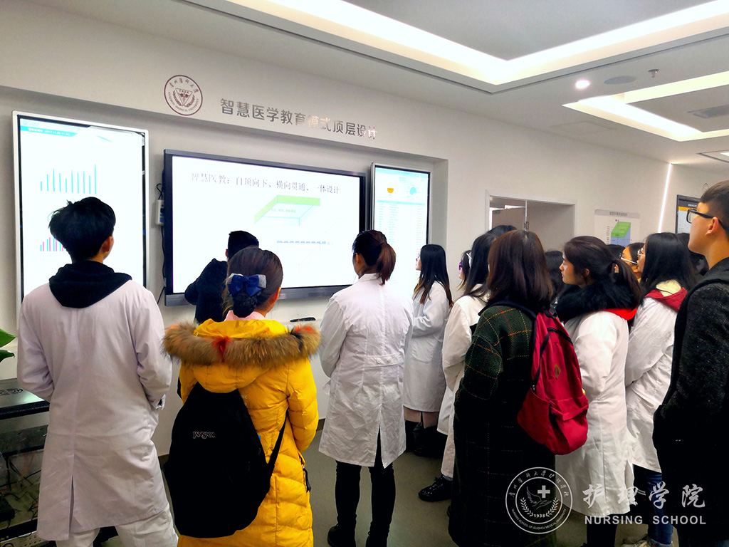 首先,发展对象们在技能中心老师的带领下,在中心一楼观看了临床教学视频,然后分别参观了VR无菌技术教学、VR -4D解剖教学、情景化腹腔教学、3D内科穿刺术、情景院前急救中心等技术。在参观的过程中,发展对象们了解到了临床技能中心是借鉴哈佛大学医公司及附属医院模拟教学模式,其目的是基于教学大数据的教学学习分析,将自主、智能、创新融入了医学教学,从而提高整体的教学效果。