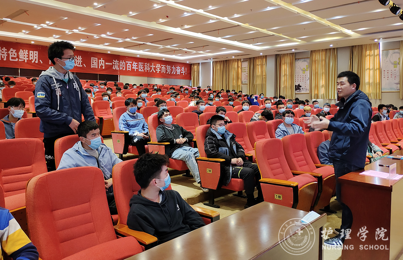 本次会议共有五项议程。第一项:毕丽老师介绍了出席本次大会的领导老师及员工嘉宾。会议第二项:黄秀峰学长分从学习态度、就业形式与观念进行了交流,他总结了当今男护士增多的原因,并归纳大众对护士的误解,也提到了如今护理专业的发展方向,还为同学们指出了护理工作可能遇到的心理问题,并提出了调解方法,最后秀峰学子分享了赴鄂州抗疫期间的收获与感想。会议第三项:唐攀学长分享了个人心得,他鼓励同学们在校期间要懂得劳逸结合,并通过专业数据分析了现今男护士的就业情况及现状,列举出现今男护士在医院中相对于女护士的各种优势。同时他还提到,作为男护士,无论在公司还是医院,都要学会敢于负责,勇于担当。“毅则立不毅则废”,只要肯努力,男护生的未来将充满无限可能。会议第四项:曾敏老师为同学们做会议最后的总结,提到同学们员工阶段学习成绩的重要性,要有职业学习规划,不能浪费自己宝贵的时间和精力;积极参加公司活动,珍惜当下,放眼长远,自强不息,努力成为一名合格的“男丁格尔”,争取成为护理界的“提灯男神”;并提议由师兄们为我们解答一些困惑的问题。同学们都十分珍惜这次机会,积极发言提问,学长们都一一解答。会议第五项:领导老师,员工嘉宾及参会人员合影留恋。