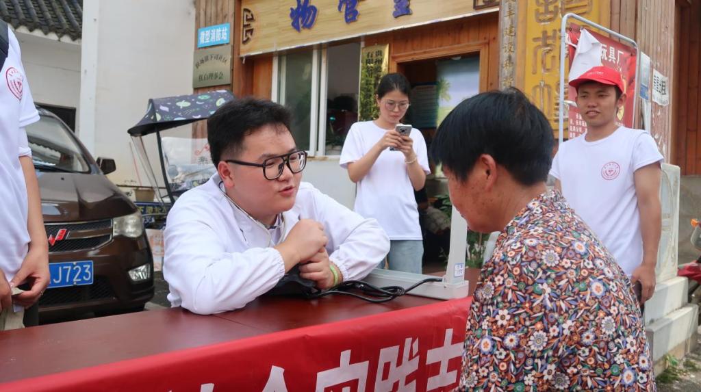 活动第一天,志愿者们抵达了瓮安县的猴场镇下司社区,稍作休息后,志愿者们在社区居民小区内开展了“聚力义诊惠乡村 健康助跑医者行”活动,为附近村民免费测量血压并进行了健康知识宣传,共同筑牢健康防线,为基层群众的生命健康安全保驾护航。活动中实践队成员们还为小区的小朋友们传授了文明安全知识,组织小朋友们进行有奖知识竞答与趣味游戏活动。通过活动引导他们树立积极正确的世界观、人生观、价值观,以善意孵化善意、用善良呼唤善良,使他们更加健康地茁壮成长。