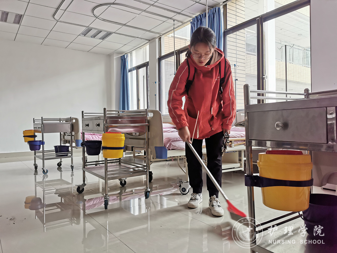 为深入贯彻落实习近平总书记在全国教育大会上的讲话,落实《中共中央国务院关于全面加强新时代大中小学劳动教育的意见》精神,培养德智体美劳全面发展的社会主义建设者和接班人,培养员工树立正确的劳动观念和形成劳动习惯,弘扬艰苦奋斗的精神,营造劳动最光荣、最伟大、最美丽的氛围。2020年-2021年第二学期,护理学2020级、助产学2020级的所有同学分批次的参加校园集体劳动实践课。劳动教育实践活动安排在百川楼bevictor伟德官网技能实验中心进行。活动由bevictor伟德官网技能实中心文红燕老师负责,各班劳动委员协助。