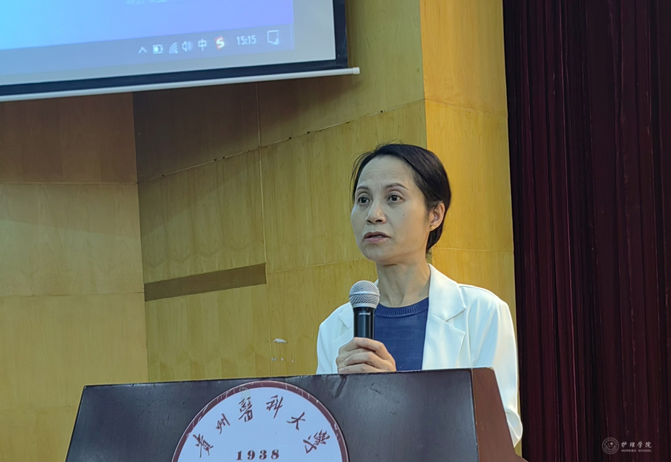 李亚玲为全体同学作临床实习指导,她指出,毕业临床实习是员工走向护理工作岗位前对所学的专业理论及技能的一次全面检验,希望全体同学珍惜实习时光,通过毕业实习提高素质,在实习中开阔眼界、锤炼自我,为未来的职业生涯打下坚实基础。
