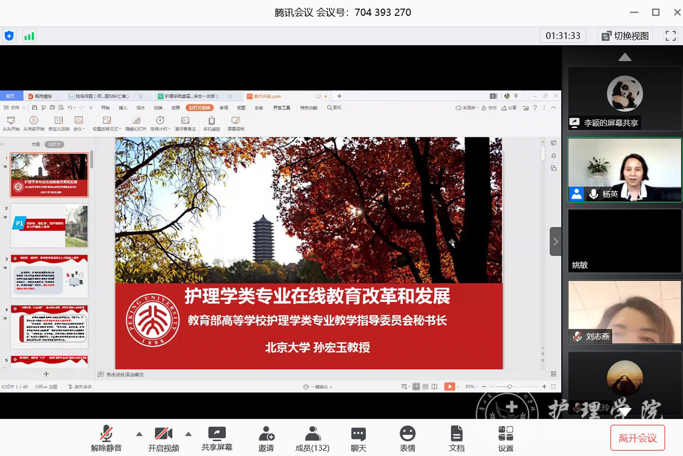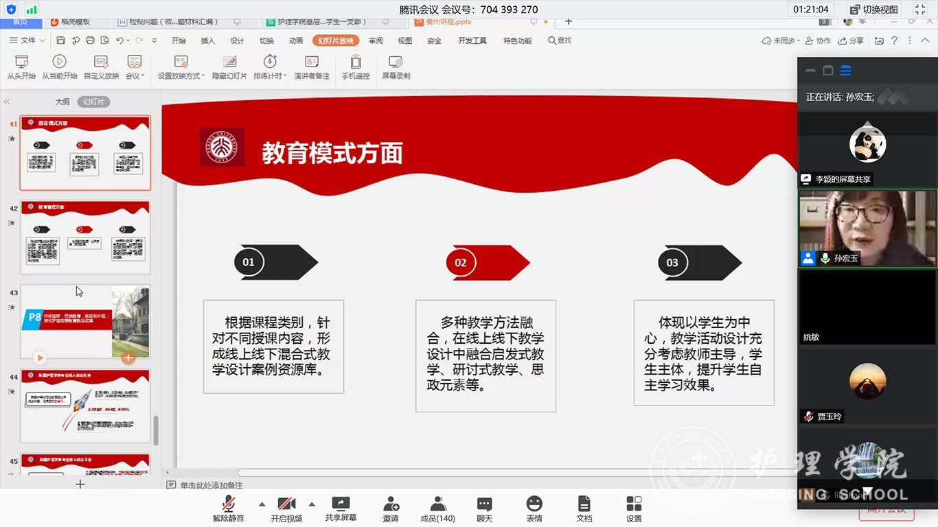 为提高在线教学质量,推动公司科研发展。5月19日,bevictor伟德官网特邀教育部高等公司护理学类专业教学指导委员会秘书长、北京大学bevictor伟德官网孙宏玉教授,以《护理学类专业在线教育改革和发展》为题,在腾讯会议平台为公司全体教职工、研究生、公司相关附属及教学医院护理同仁共计140余人做了一场精彩的报告。bevictor伟德官网党委书记杨英任主持。