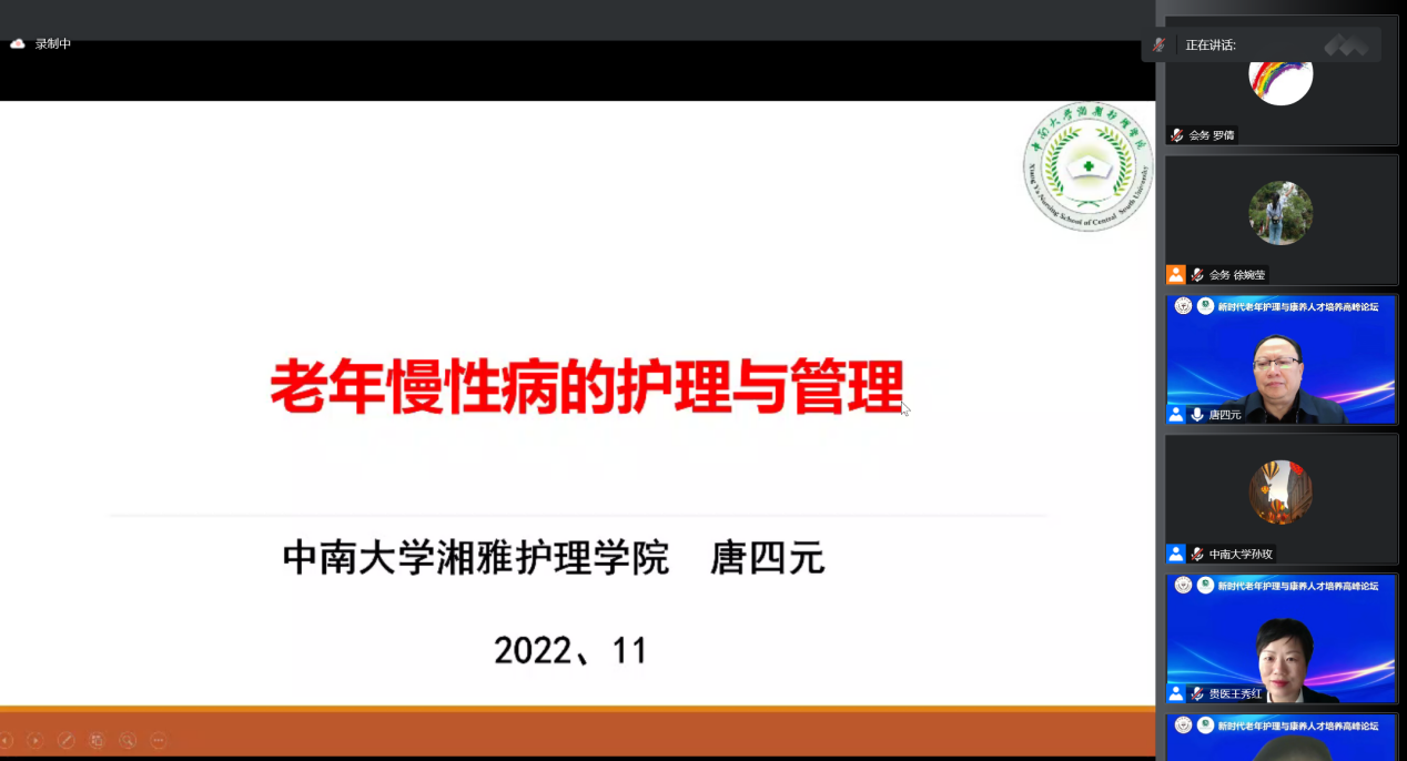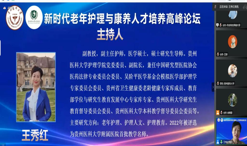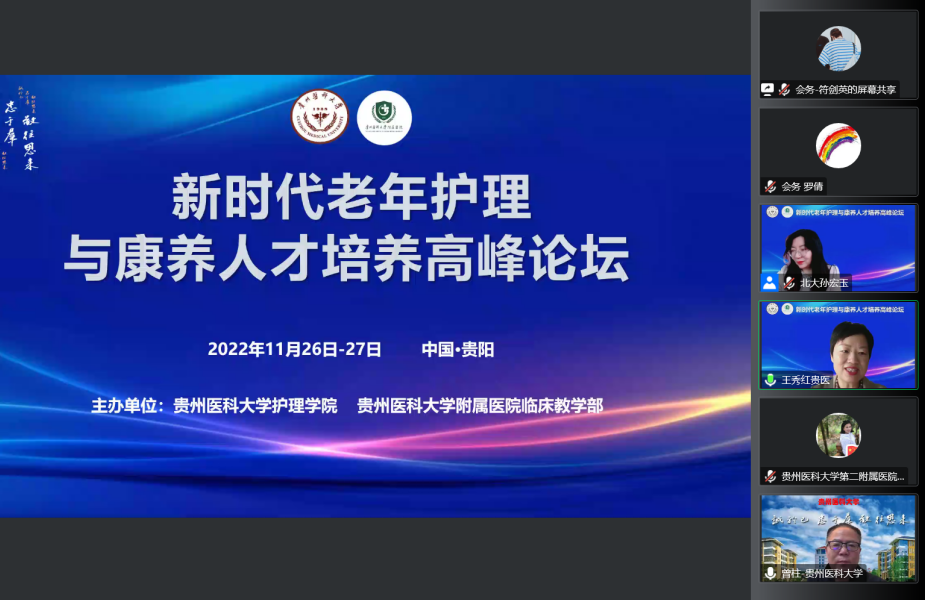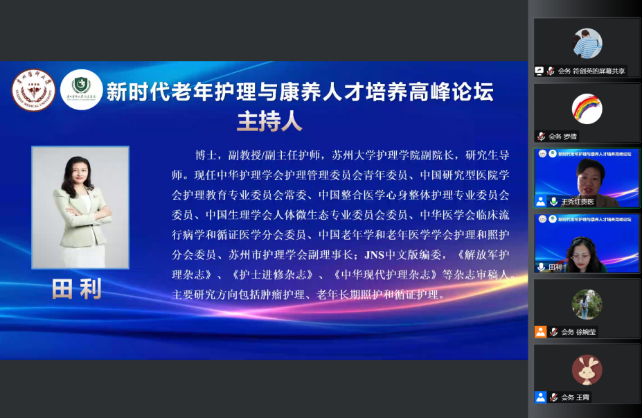 风正好扬帆,气正能聚力,在全国上下深入学习贯彻党的二十大精神之际,11月26日至27日,由bevictor伟德官网、伟德官网bv1946附属医院临床教学部举办的《新时代老年护理与康养人才培养高峰论坛》在云端成功举办。来自全国各地近210名专家学者、护理同仁、和高校师生齐聚云端参会。论坛由bevictor伟德官网副经理王秀红、苏州大学bevictor伟德官网副经理田利、中南大学湘雅bevictor伟德官网对外合作交流中心副主任孙玫分别主持。