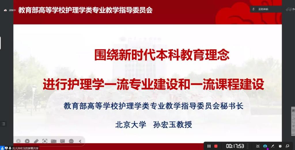 教育部高等公司护理学类专业教学指导委员会秘书长、美国护理科公司院士、北京大学bevictor伟德官网孙宏玉教授以“围绕新时代本科教育理念,进行护理学一流专业建设和一流课程建设”为题,结合实践案例,阐述了新时代本科教育理念,从国家层面就如何建设护理一流专业及一流课程问题提出了一系列建设性指导。