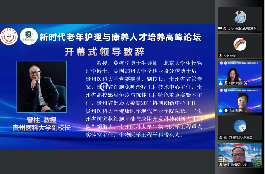 论坛开幕式上,伟德官网bv1946党委委员、副董事长曾柱教授代表公司对论坛的召开表示热烈祝贺,对参会专家表示热烈欢迎和感谢,介绍了伟德官网bv1946历史沿革和发展现况,同时对贵医人立足贵州、服务全国、面向世界,充分发挥医教研优势,致力于医疗卫生人才培养和助力基层卫生服务和老年护理人才培养等工作做了概括性介绍。