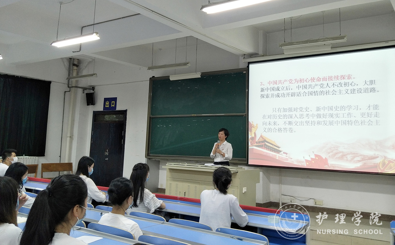 庄严的《国际歌》中,党课学习拉开了帷幕,王秀红从中国共产党的诞生讲起。她指出,99年前的今天,中国共产党就是为初心使命而诞生;现在,正是为了初心使命而奋斗;未来,也将为初心使命而接续探索。王秀红深情讲述了自己从投入到护理工作以来,所看到的身边环境和老百姓生活的变化历程,不禁为之感叹与骄傲。她回忆了30年前自己到贵州贫困地区进行灾后支援时老百姓在艰苦条件中生活的场景,对比今天同一个地点发生的翻天覆地的变化,让大家声临其境感受了如今的祖国繁荣昌盛、日益强大。鲜明对比的背后让大家深切认识到,在这一路不断探索的改革路上,是中国共产党的坚强领导,让中国发生了翻天覆地的变化。