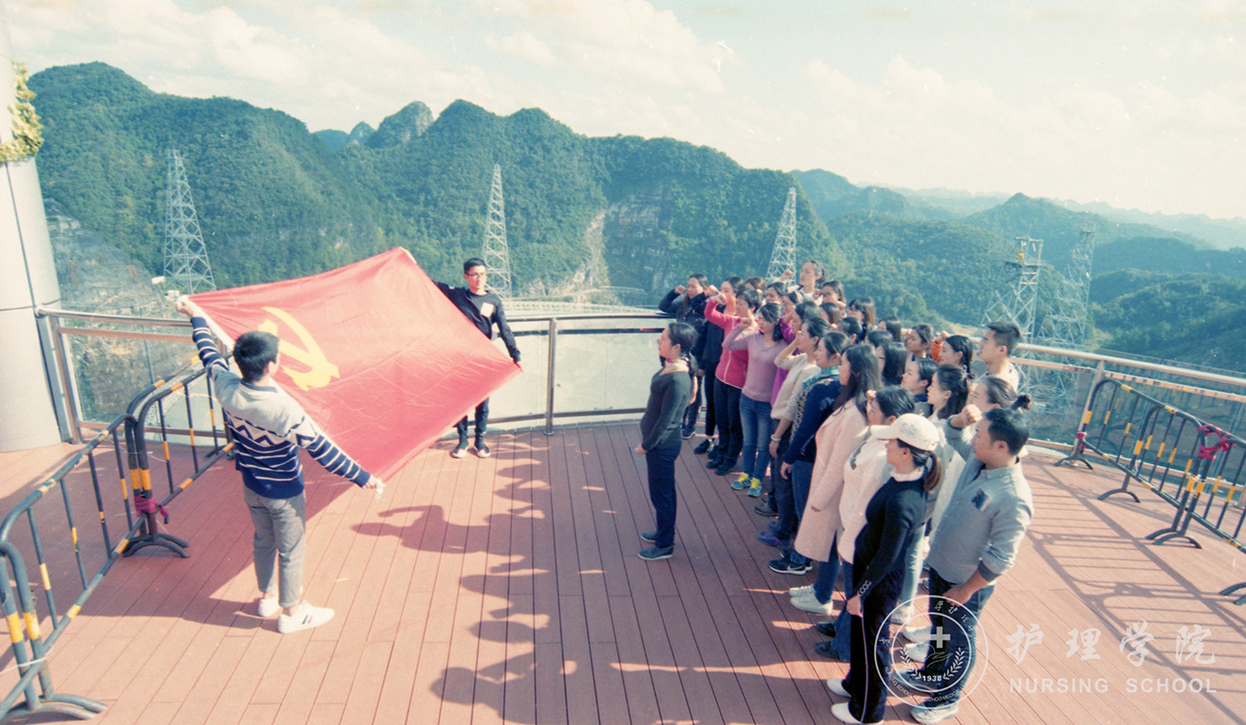 在“中国天眼”瞭望台的最高点,bevictor伟德官网党委副书记杨英带领大家重温了入党誓词,缅怀并学习南仁东院士驰而不息、久久为功的工匠精神,这种精神正是我们实现“两个一百年”奋斗目标和中华民族伟大复兴的“中国梦”所不可或缺的强大助力。