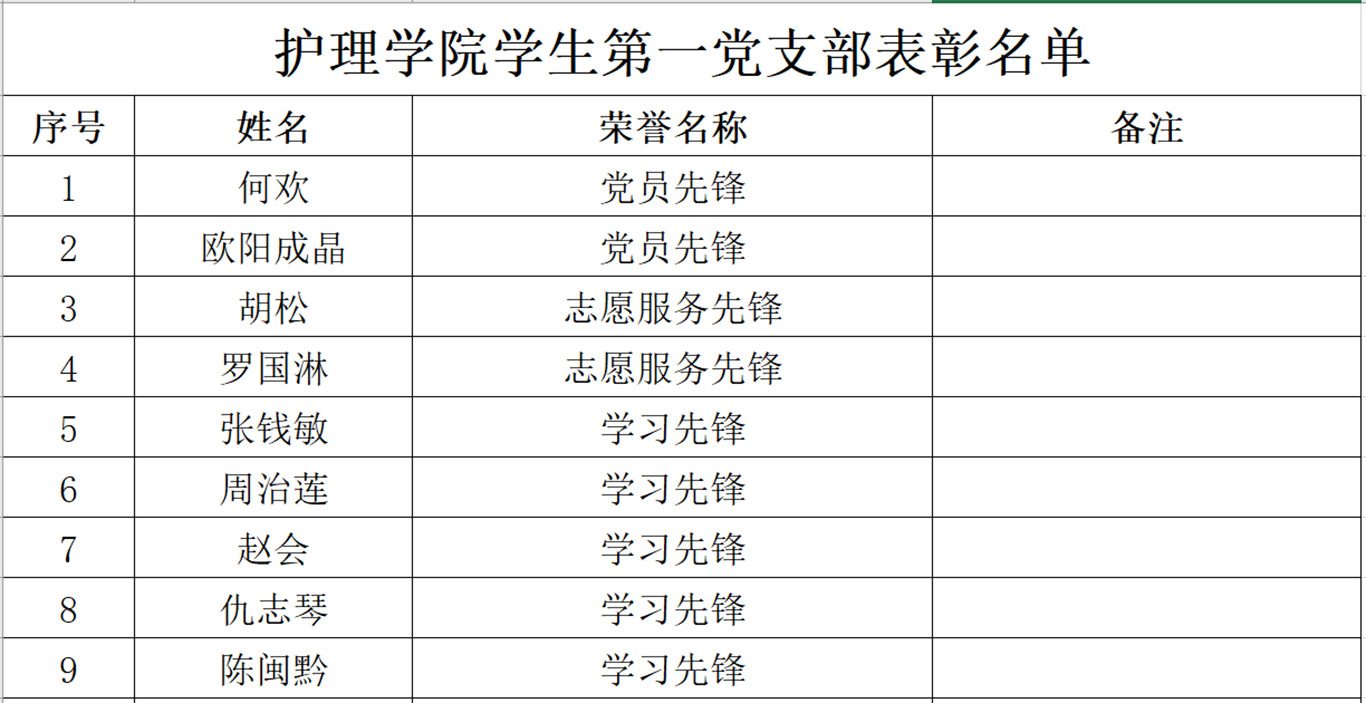 本次表彰设有“党员先锋”“志愿服务先锋”“学习先锋”等荣誉,综合党员在抗击新冠肺炎疫情防控工作中志愿服务情况、日常支部组织生活参与情况、“学习强国”APP积分等综合情况进行评选。最终,何欢、欧阳成晶获评“党员先锋”,胡松、罗国淋获评“志愿服务先锋”,张钱敏、周治连等5名同志获评“学习先锋”。