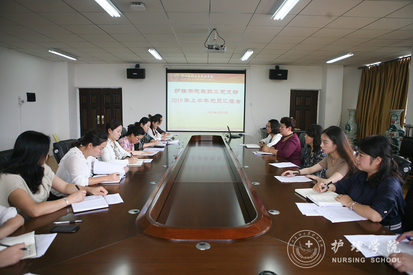 最后杨英和贾秀英作总结讲话,她们指出:教工支部的工作在有序开展,希望每个党员能按照新时代新标准要求自己,充分发挥党员的先锋模范作用,带动全院师生为实现“十三五”规划目标共同奋斗。