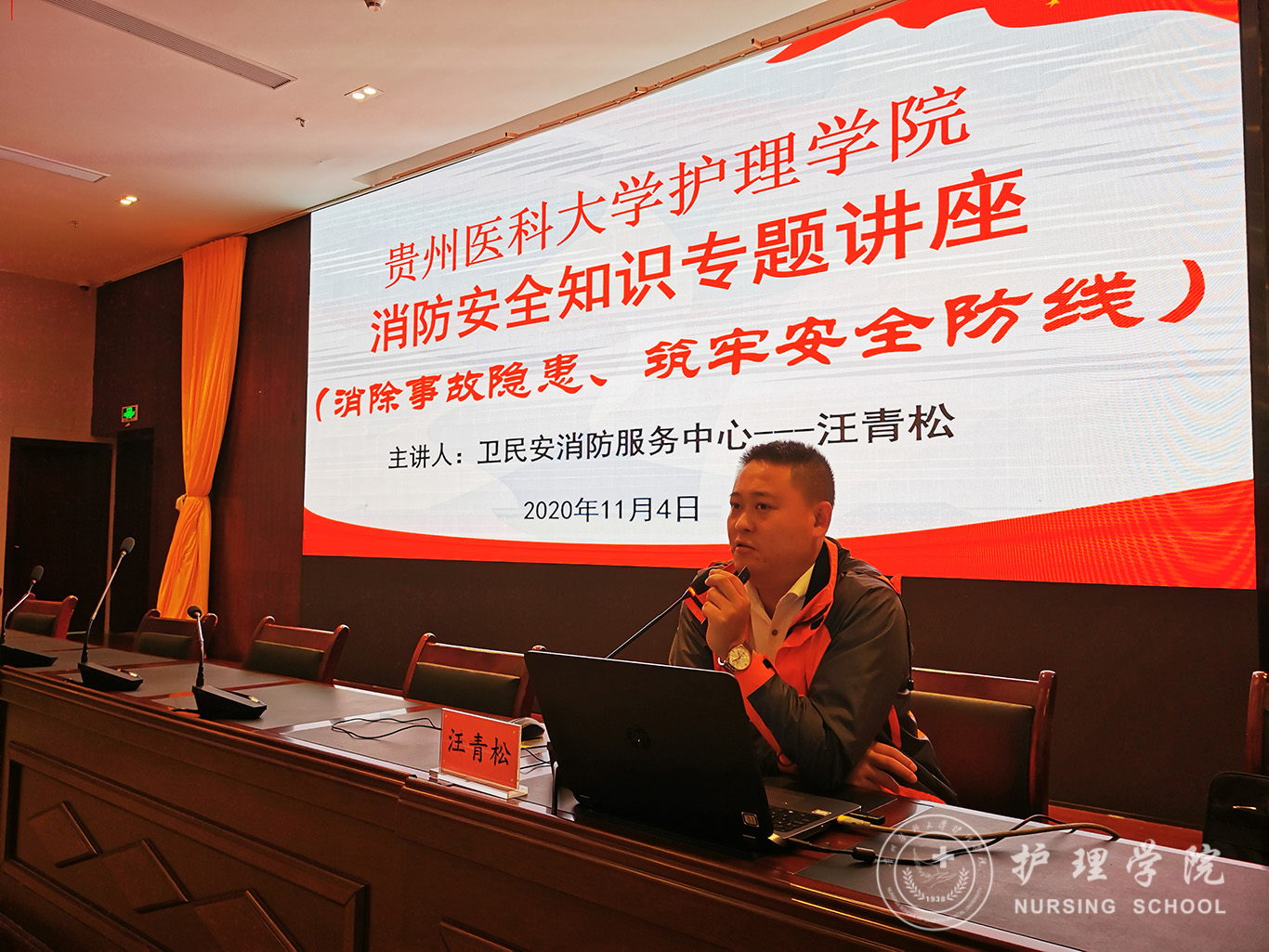 为进一步提高全体师生的消防意识和应急反应能力, 11月4日,bevictor伟德官网在南校区道德讲堂开展了“消防安全宣传月”主题党日活动。本次活动特别邀请了贵阳卫民安消防知识宣传中心宣教部汪青松主任为bevictor伟德官网全体教职工和员工做了《消防安全知识专题——消除事故隐患,筑牢安全防线》讲座。活动由教职工党支部张仁莉同志主持。