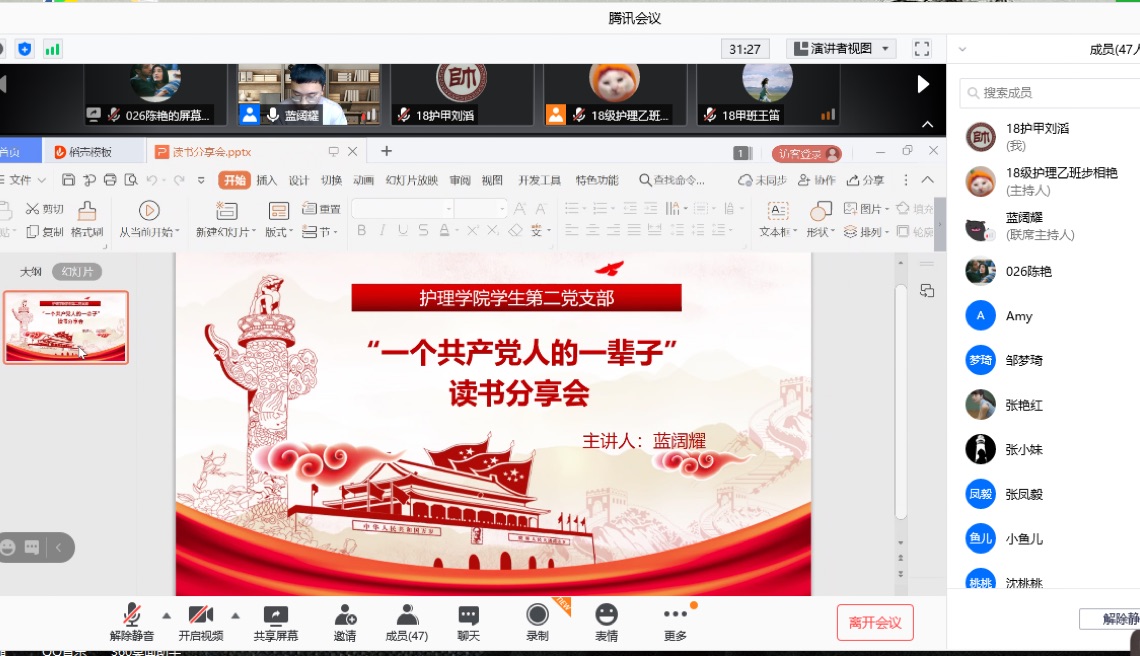 1月18日,bevictor伟德官网员工第二党支部为丰富“不忘初心、牢记使命”主题教育学习形式,全力推进队伍文化建设,提高党员文化素养,营造崇尚学习的浓厚氛围,组织党员同学通过腾讯会议开展线上“一个共产党人的一辈子”主题党日活动,本次活动由员工第二党支部书记李杏春主持。