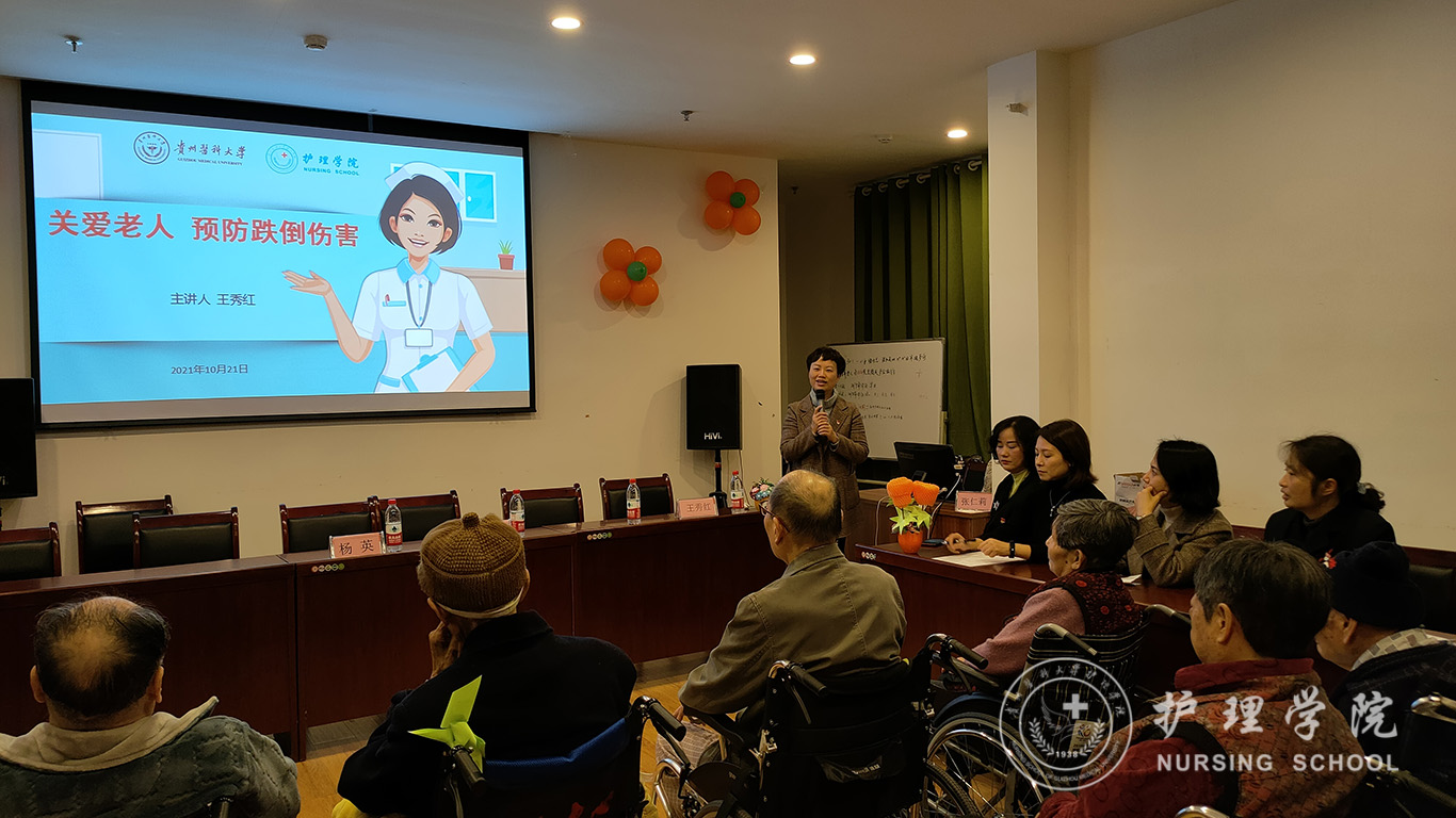 随后开展了支部共建活动——科普助力健康,携手关爱夕阳。王秀红以《关爱老人 预防跌倒伤害》为题对照护中心老人和工作人员进行老年人保健知识宣讲。从老人如何进行锻练到一旦发生跌倒如何处理等都进行了详细的讲解并现场演绎。活动最后支部党员也和老人以及中心工作人员进行了交流。
