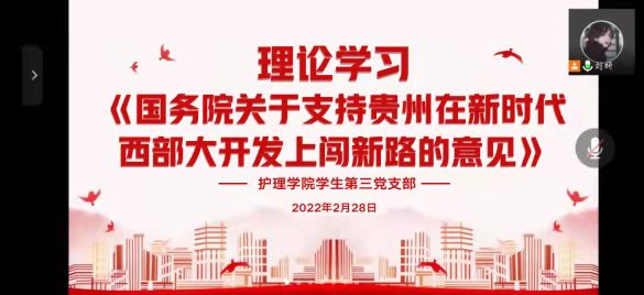 2月28日至3月7日,bevictor伟德官网三个员工党支部在腾讯会议开展了关于《国务院关于支持贵州在新时代西部大开发上闯新路的意见》(以下简称《意见》)的学习及研讨。员工第一党支部书记杨叶卿、员工第二党支部书记刘文壮、员工第三党支部书记刘妍分别主持会议,各支部党员参会。