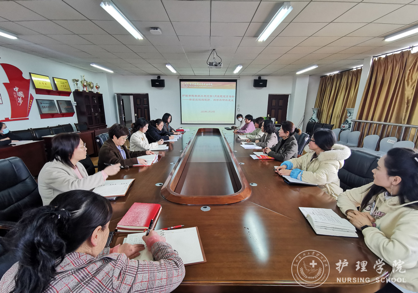 本次活动由刘志燕、晏家芳、刘林敏三位老师分享了赴南京参加“教育部高等公司护理学类专业教学指导委员会年会暨全国护理专业课程思政示范课程教师培训会”的感悟。三位老师从不同角度为大家介绍了培训会内容,并结合公司发展实际讲述了自己的所思所想、所感所悟。参会党员纷纷围绕思政课建设这一主题展开了讨论,并表示此次学习分享会收获颇丰、催人奋进。