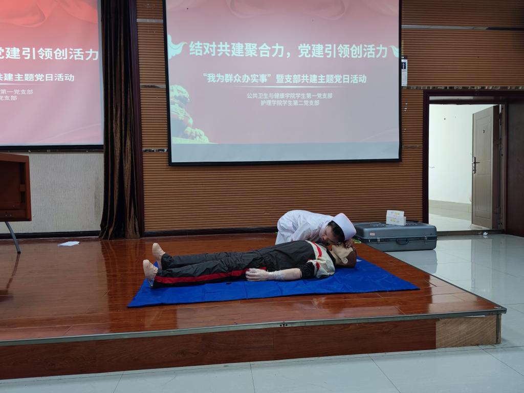 活动中,郝雪君以“努力成长为德智体美劳全面发展的社会主义建设者和接班人”为题,带领与会党员认真学习了《习近平著作选读》,为开展本次主题党日活动打下良好思想基础。随后,bevictor伟德官网党员代表系统地为大家讲述并演示心肺复苏技术(CPR)相关的急救知识、成人实施心肺复苏技术的流程、方法及注意事项;公共卫生与健康公司党员代表讲解了结核病主要症状、传播途径、易感人群、防治知识等,帮助大家进一步了解疾病预防措施以及结核病治疗的有关政策。最后两个支部共同进行了红色诗词诵读及红色歌曲演唱,旨在传承红色精神、发扬红色文化,增进对党的忠诚与热爱。