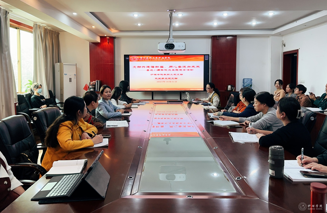 10月31日下午,bevictor伟德官网教职工党支部与附属医院机关第三党支部(护理部党支部)在北校区行政楼五楼党员活动室开展了“支部共建谱新篇,同心奋进向未来——喜迎85周年校庆”主题党日活动,活动由附属医院机关第三党支部书记、附属医院护理部副主任蔡鹏主持。bevictor伟德官网副处级组织员张黎、附属医院护理部副主任顾颖参加了此次活动。