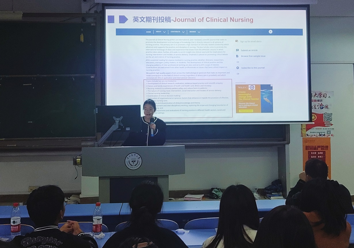 本次活动邀请了2021级研究生李蕾、常慧为大家分享学习、科研经验。她们着重从解读公司公司产品方案、各学习阶段需掌握的学习内容、在临床轮转时具体要完成的任务、国内外护理期刊投稿的注意事项等几方面进行了详细的讲解,并鼓励大家积极参加社会实践活动,增长社会经验,丰富研究生生活。