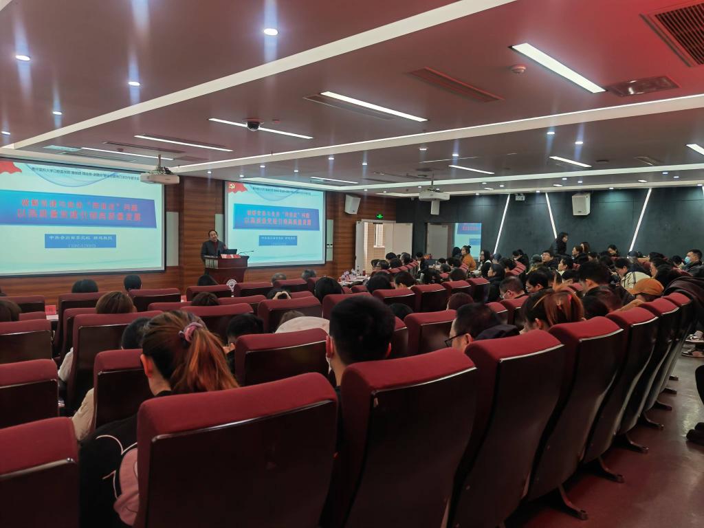 为深入学习贯彻党的二十大精神,推动党建与业务工作深度融合,2月18日下午,由口腔医(学)院主办的“强党建·精业务·促融合”联合主题党日活动暨破解“两张皮”问题专题讲座在北京路校区临床技能中心207室进行。bevictor伟德官网党委书记杨英、经理王秀红、党委副书记何为、副经理刘志燕及全体教职工党员参加了此次活动。活动特邀全国优秀社会科学普及专家、贵州知名教授、省委党校原机关党委委员、政治学部主任、三级教授、研究生导师、贵州省委组织部组干院特聘顾问郝建教授作专题辅导讲座。
