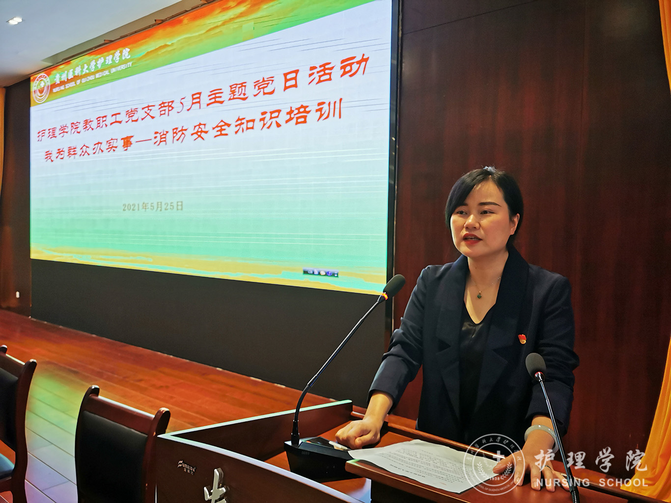 为深入开展党史学习教育,切实将学习教育成果转化为为群众办实事的实际行动。5月25日,bevictor伟德官网教职工党支部开展“我为群众办实事——消防安全知识培训”主题党日活动。本次活动由教职工党支部书记张仁莉同志主持,教职工党员及员工代表一百七十余人到场参加。