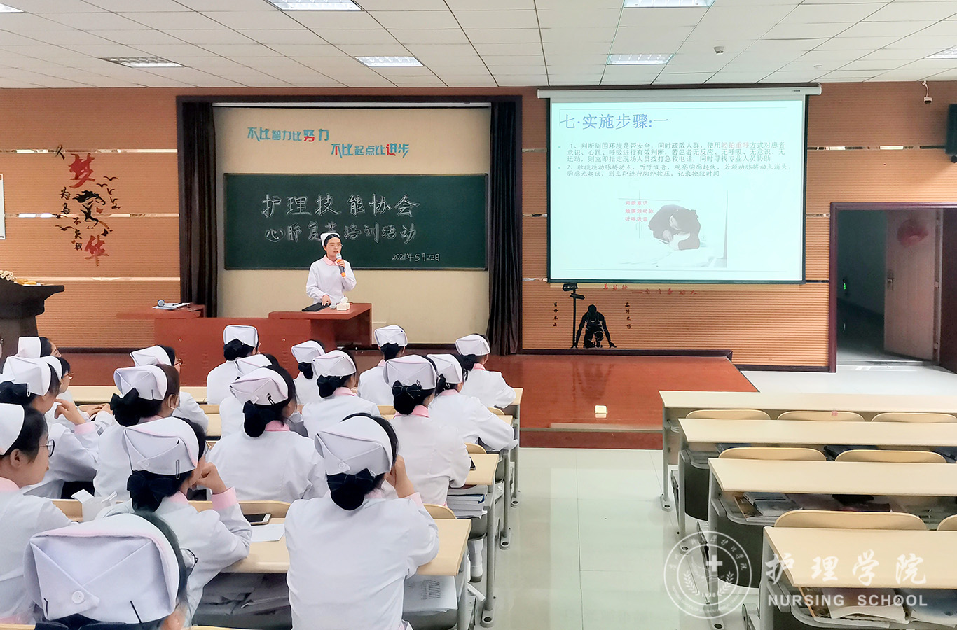 5月22日,为规范员工急救技能操作,提高应急抢救成功率,切实提高为人民群众办实事的能力,伟德官网bv1946护理技能协会于百川楼1101教室及模拟实验室组织开展了心肺脑复苏术培训,本次培训邀请到了在第十届中国老员工医学技术技能大赛中荣获团体二等奖的2017级护理丙班欧阳成晶与2017级护理乙班黄虹久进行指导,护理技能协会成员及各班代表参加培训。