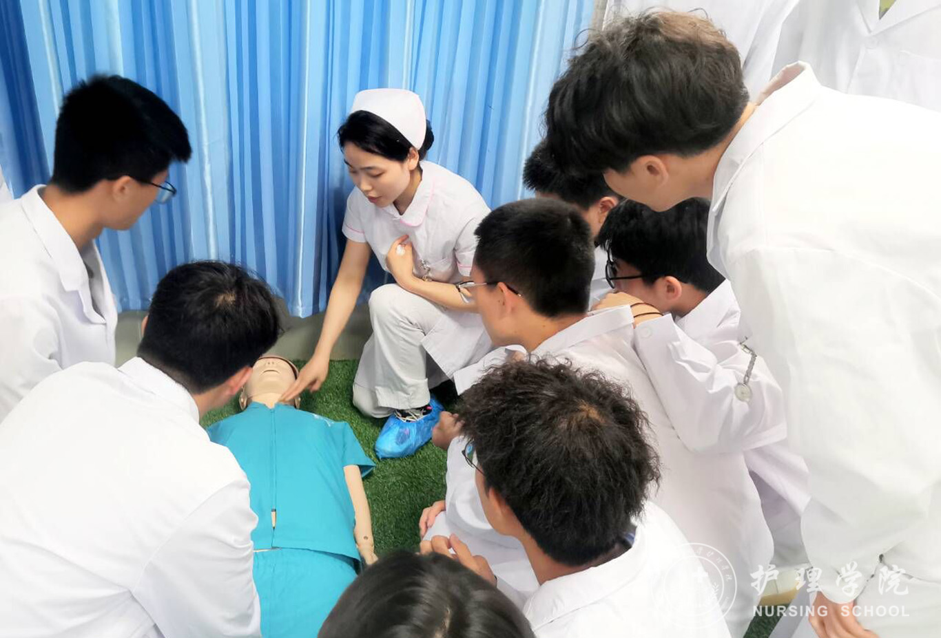 活动伊始,技训部副部长杨光粉进行了“心肺脑复苏术”的理论知识讲解,并开展随堂测试检验大家的学习成果。随后在模拟实验室,黄虹久进行院内外急救操作演示,欧阳成晶从旁解说。在示教的过程中,两位同学始终秉承着“时间就是生命”的理念,要求大家做到浓缩时间,精准操作。同时,大家也就“临床与教学”上思维的异同做出讨论。示教完毕后,同学们分组练习,在实践中领悟操作要点,并顺利完成了操作展示。