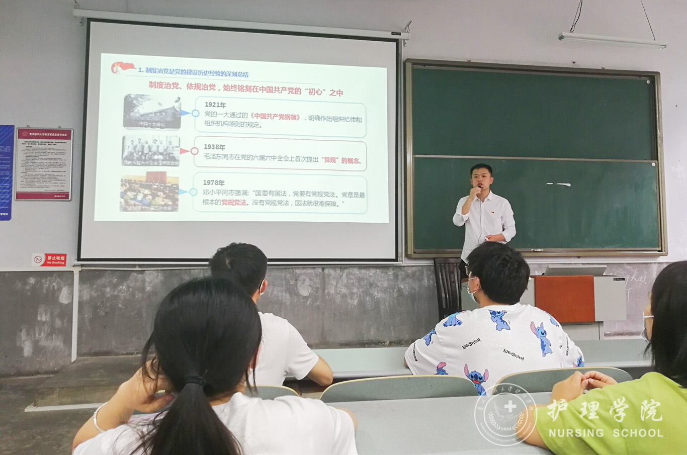 6月16日,为深入推进党史学习教育和“牢记殷切嘱托、忠诚干净担当、喜迎建党百年”专题教育走深走实,引导广大党员干部学习领会党内法规制度,切实担负起全面从严治党政治责任,bevictor伟德官网员工第二党支部邀请bevictor伟德官网党委委员、副书记何为讲了一堂题为《制度治党——全面从严治党的重要保障》的生动党课,第二党支部全体员工党员于北校区普教六参会。