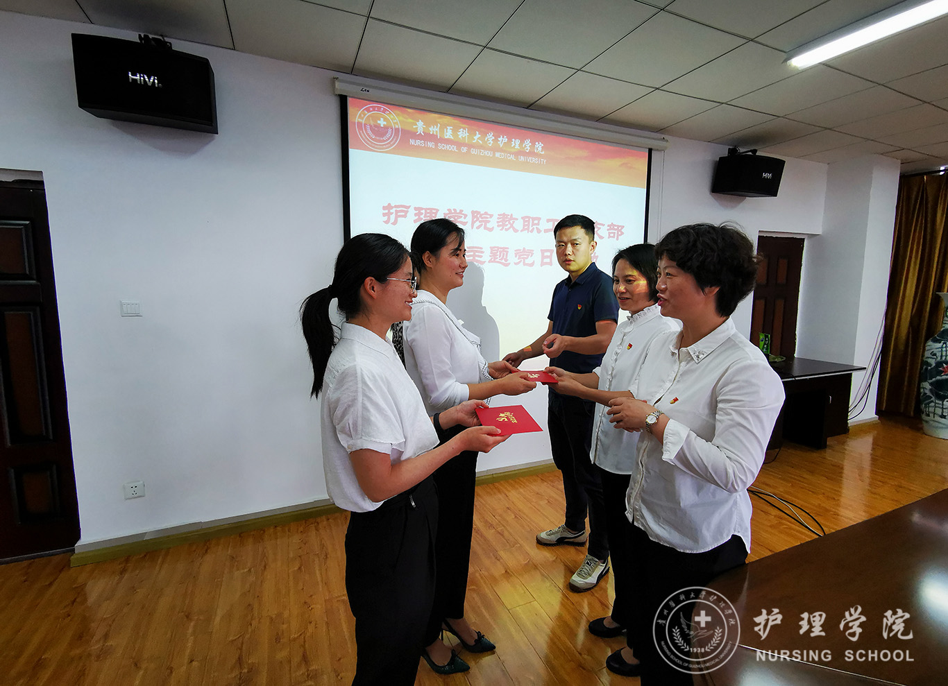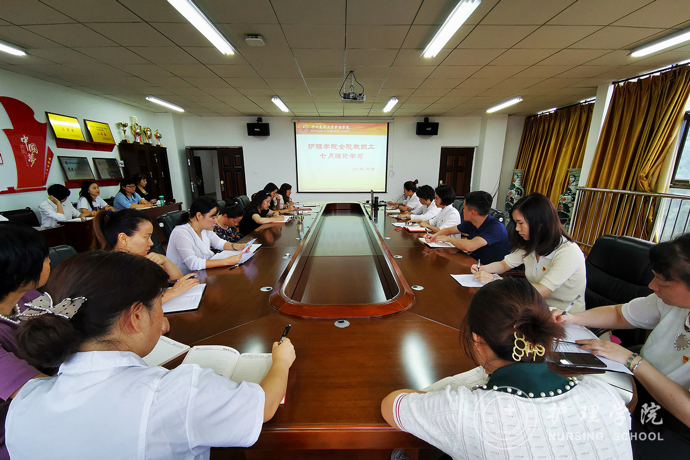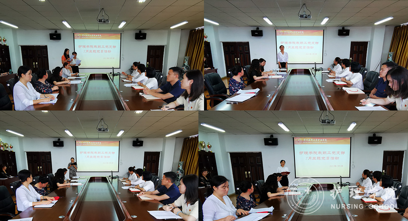 张仁莉同志带领全院教职工全文学习了习近平总书记在“庆祝中国共产党成立100周年大会上”的讲话。外科护理学教研室副主任韩樱及正科级组织员曾敏同志分别领学了谌贻琴同志在“贵州省庆祝中国共产党成立100周年大会上的讲话”及中共中央印发的《中国共产党党旗党徽条例》等内容。