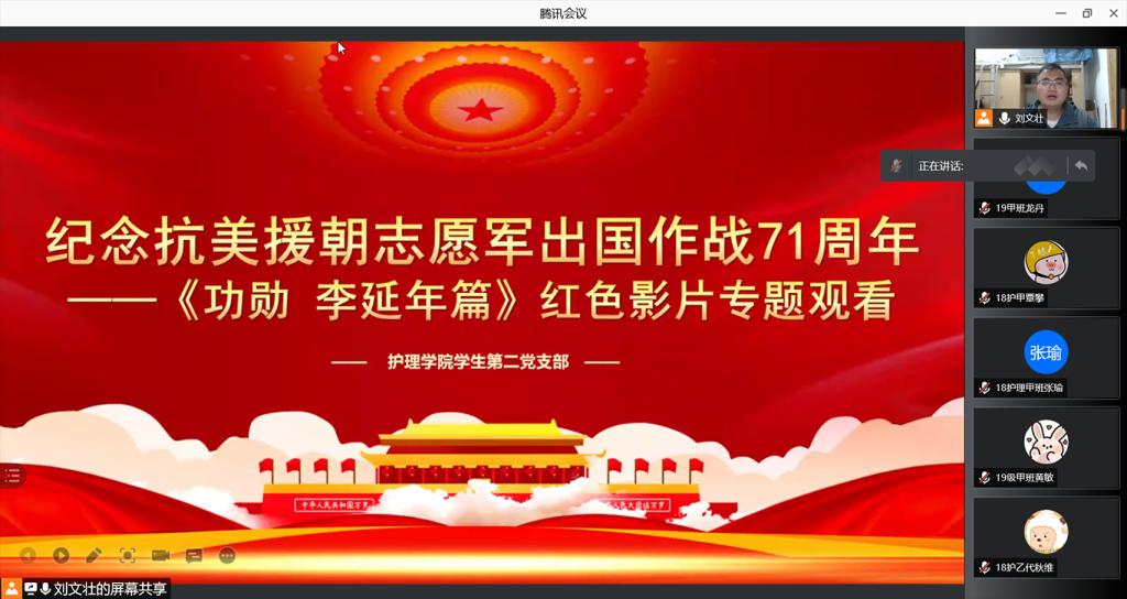 10月30日,为深入学习贯彻习近平总书记“七一”重要讲话精神,纪念抗美援朝志愿军出国作战71周年,bevictor伟德官网员工第二党支部在腾讯会议组织观看《功勋 李延年篇》专题红色影片。活动由bevictor伟德官网员工第二党支部书记刘文壮主持,bevictor伟德官网员工第二党支部全体党员参加。