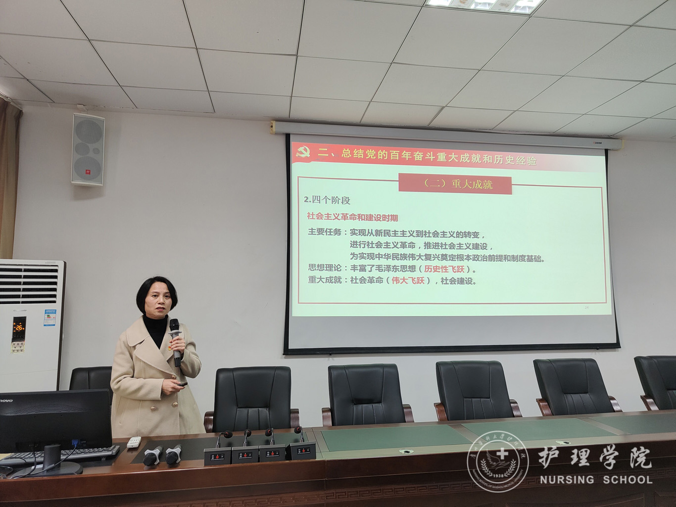 随后,bevictor伟德官网党委书记杨英以“勿忘昨天、无愧今天、不负明天”为主题为两院师生党员做了党的十九届六中全会精神宣讲。杨英强调,党的十九届六中全会的召开是具有历史性意义的重要会议,我们要更加紧密地团结在以习近平同志为核心的党中央周围,以咬定青山不放松的执着奋力实现既定目标,以行百里者半九十的清醒不懈推进中华民族伟大复兴。
