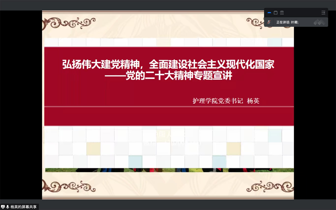 12月10日,为深入学习贯彻党的二十大精神,引导员工党员认真学习,领悟精神实质,bevictor伟德官网党委书记杨英以“弘扬伟大建党精神,全面建设社会主义现代化国家”为主题在bevictor伟德官网员工第一党支部宣讲党的二十大精神,会议由支部书记杨叶卿主持,全体支部党员、 入党积极分子通过腾讯会议参加本次宣讲。