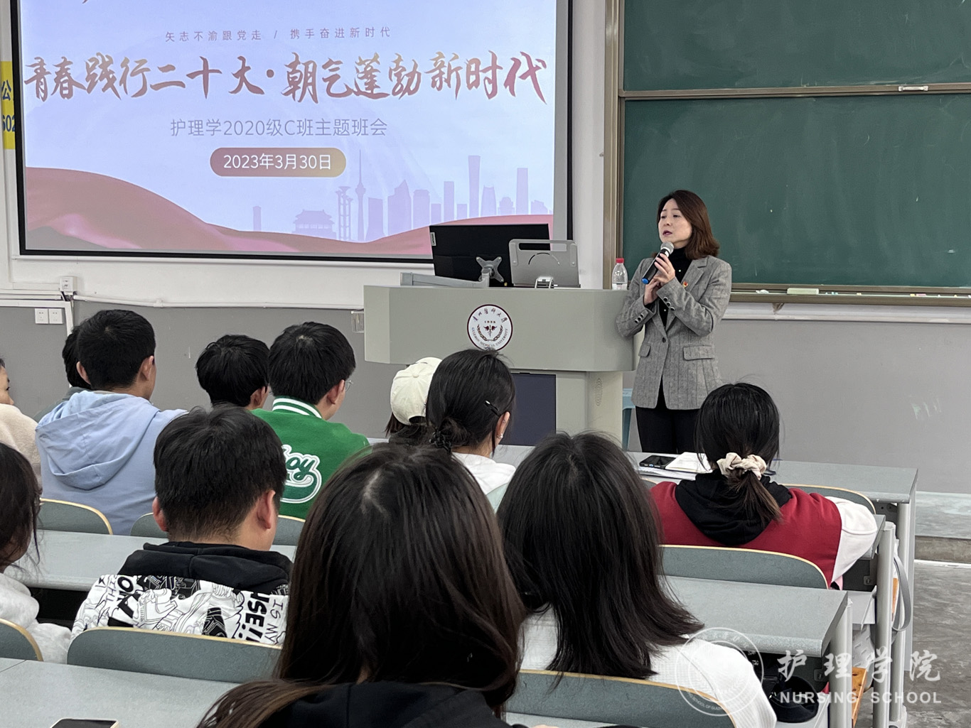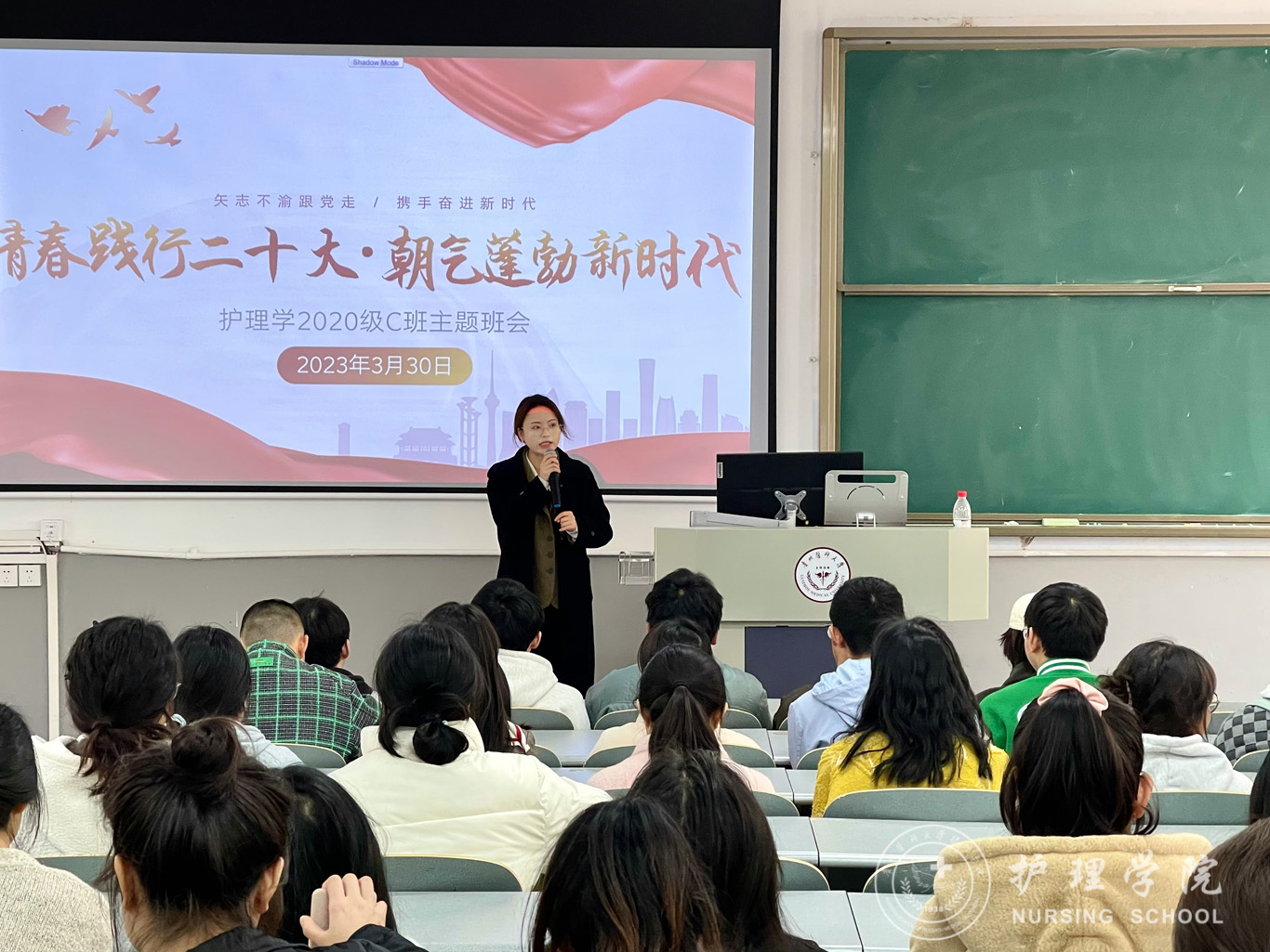 3月30日,为深入学习宣传贯彻党的二十大精神,强化思想引领,聚焦立德树人根本任务。bevictor伟德官网党委委员、副处级组织员张黎到护理学2020级C班开展了“青春践行二十大,朝气蓬勃新时代”主题班会活动,会议由辅导员刘妍主持,班级全体同学参与。