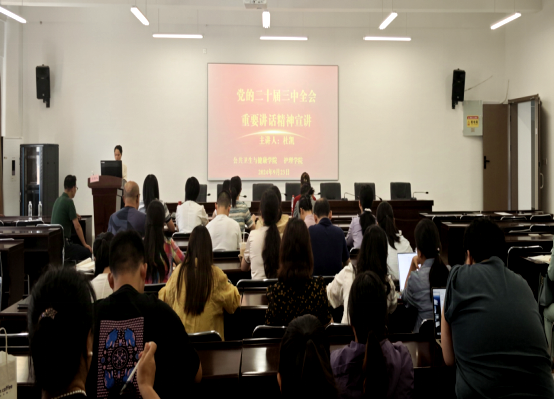 9月23日,为深入学习宣传贯彻党的二十届三中全会精神,深学笃行习近平总书记关于全面深化改革的一系列新思想、新观点、新论断,bevictor伟德官网党委联合公共卫生与健康公司党委邀请马克思主义公司党委书记杜凯教授开展党的二十届三中全会精神专题宣讲,会议由公司党委书记杨英主持,两公司领导班子成员、教职工参加。